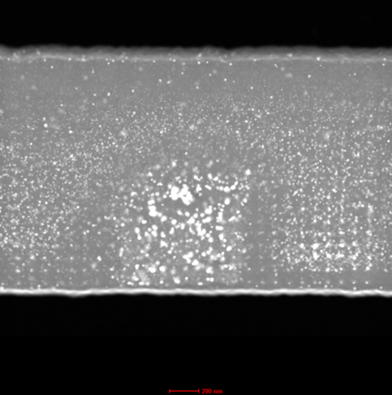 Some of these first-ever results are shared here. What we're looking at is 400 nm thick nano channels with 20 nm SiN membranes on either side, all filled with highly concentrated fluorescein liquid.